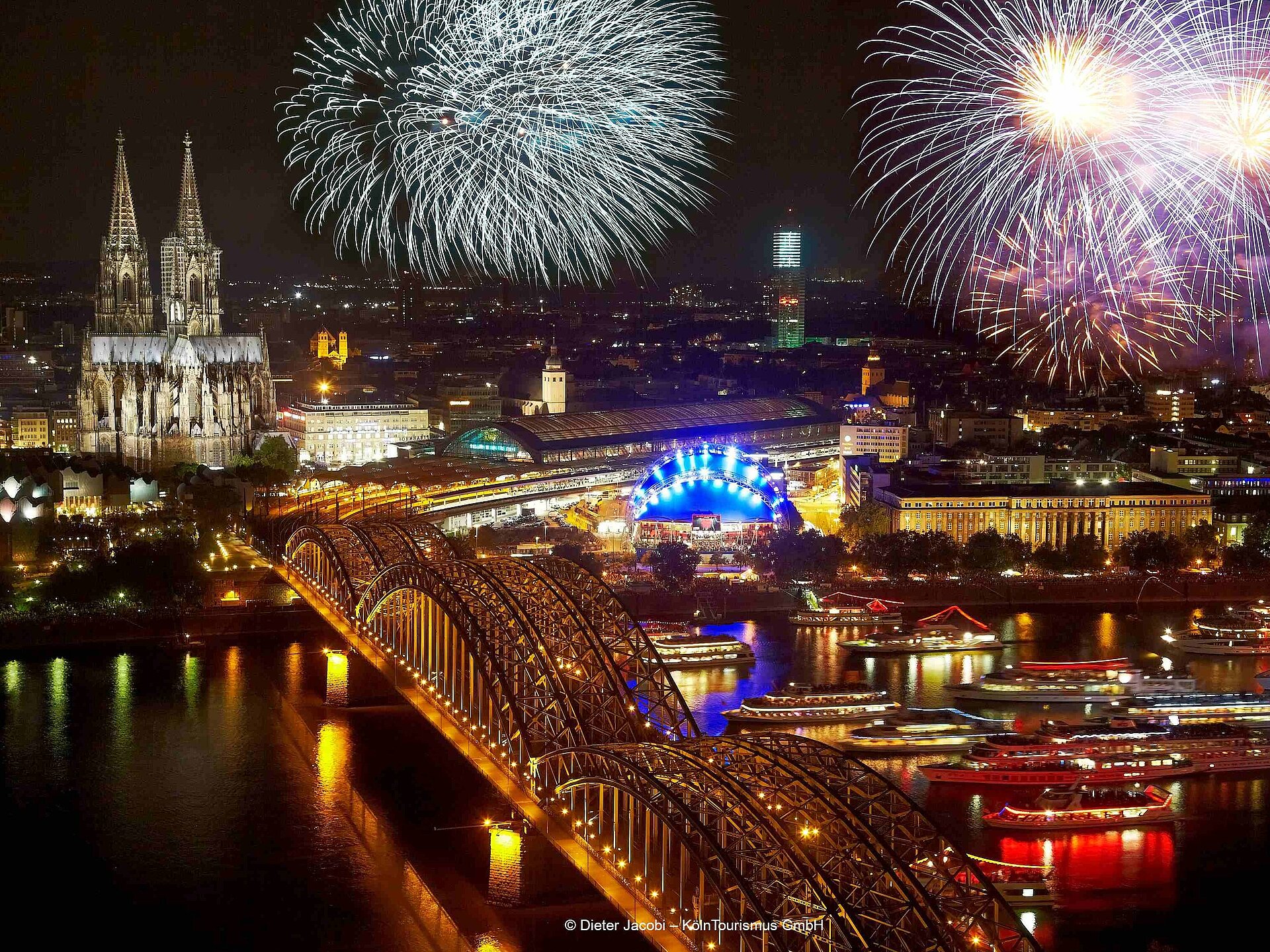 Kölner Lichter am Rheinufer