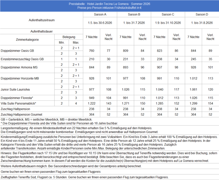 Preise und Reisezeiträume