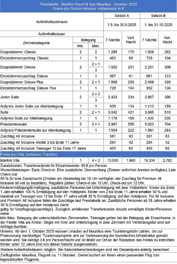 Preise und Reisezeiträume